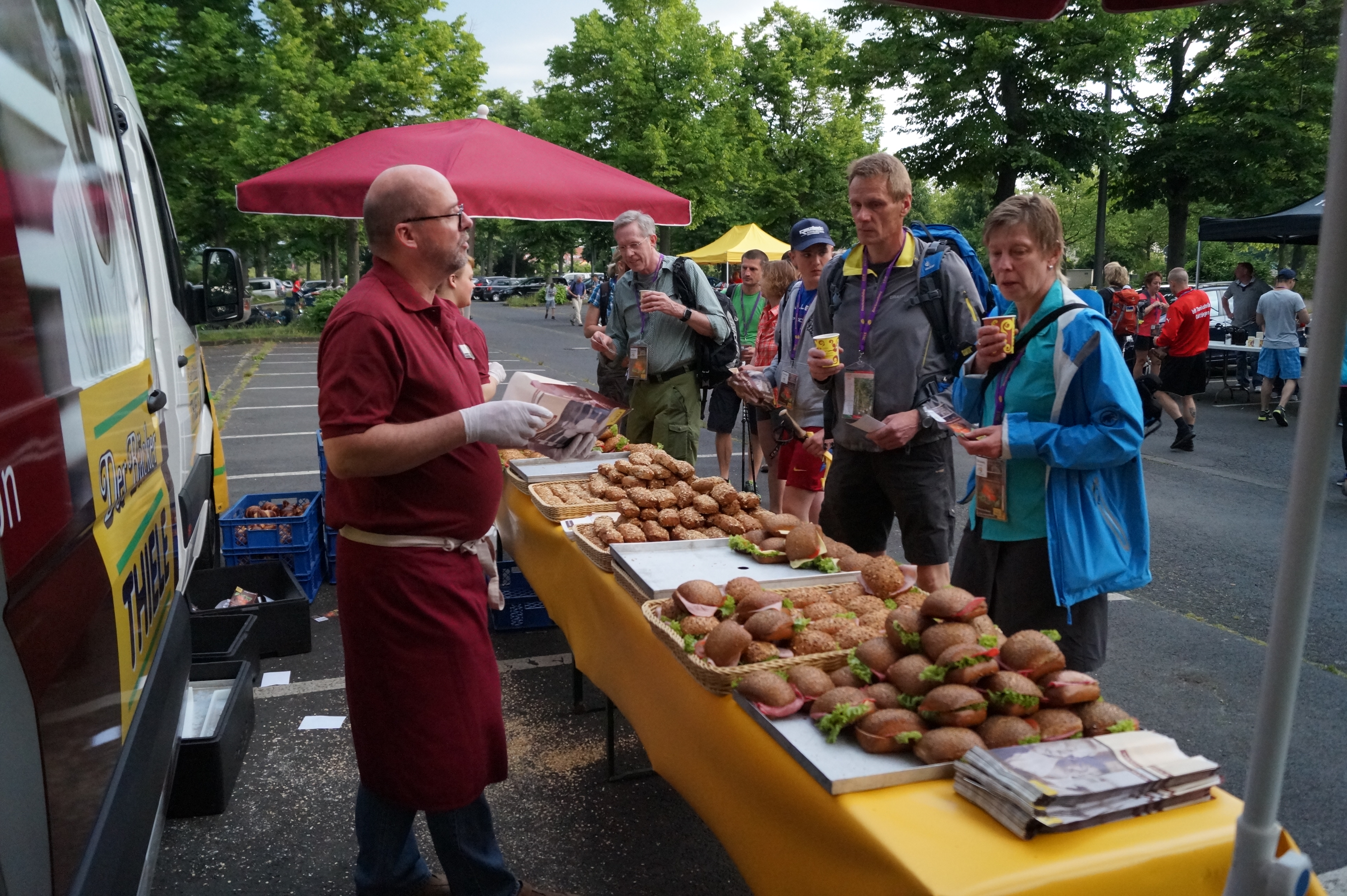 Zielfeier mit Finisher Getränk, Finisher Shirt und Medaille